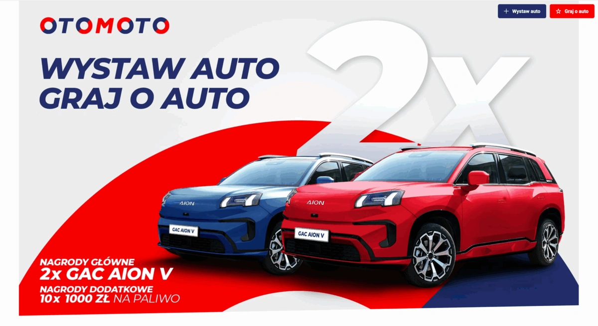 Uczestnicy konkursu, którzy wystawią swoje auto w serwisie, mogą wygrać jeden z dwóch SUV-ów GAC AION V lub jedną z 10 kart paliwowych ORLEN o wartości 1000 zł każda. To okazja, by połączyć codzienny proces sprzedaży z szansą na wyjątkową nagrodę – niezależnie od tego, czy kierowcy planują przesiadkę na nowszy model, zmianę na auto elektryczne, czy po prostu chcą sprzedać pojazd, który towarzyszył im przez lata. Konkurs trwa od 5 listopada do 17 grudnia 2025 roku.